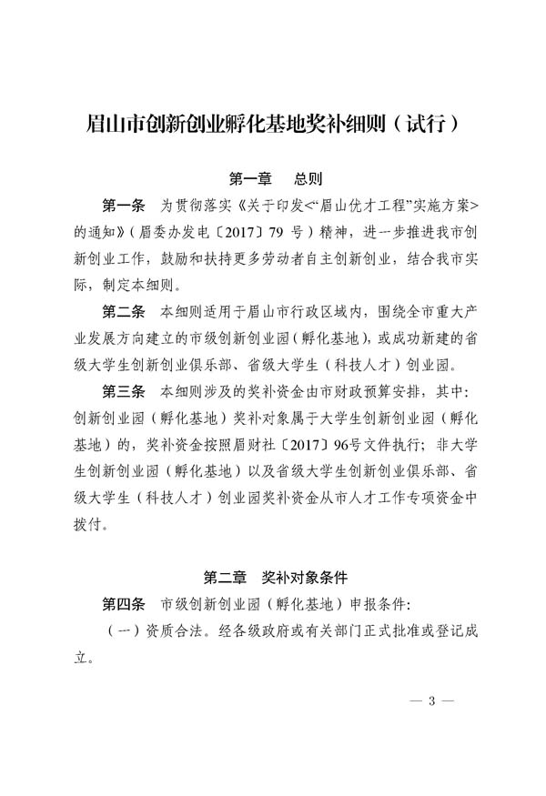 眉山市創(chuàng)新創(chuàng)業(yè)孵化基地獎(jiǎng)補(bǔ)細(xì)則(試行)