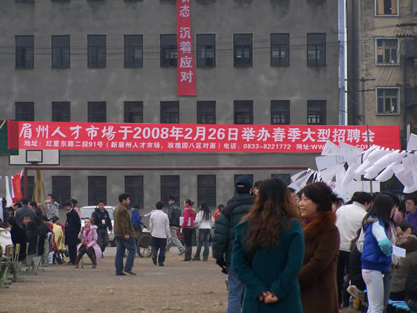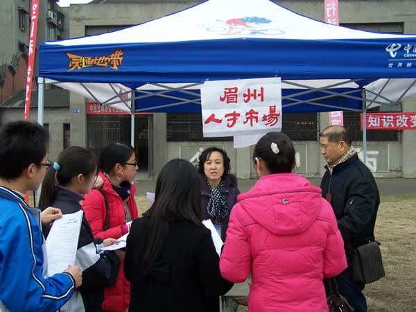 2007年12月31日上午10時,眉州人才市場與眉山職業(yè)技術(shù)學院聯(lián)合舉辦的“2008屆畢業(yè)生雙選會”隆重開幕,此次盛會是眉州人才市場與眉山職業(yè)技術(shù)學院為解決應屆畢業(yè)生就業(yè)的重大舉措,推進了該校畢業(yè)生就業(yè)工作,促進畢業(yè)生充分就業(yè),為用人單位和畢業(yè)生提供一個雙向選擇的平臺,此次盛會有近150家招聘單位蒞臨招聘,2000余名求職者到會求職。